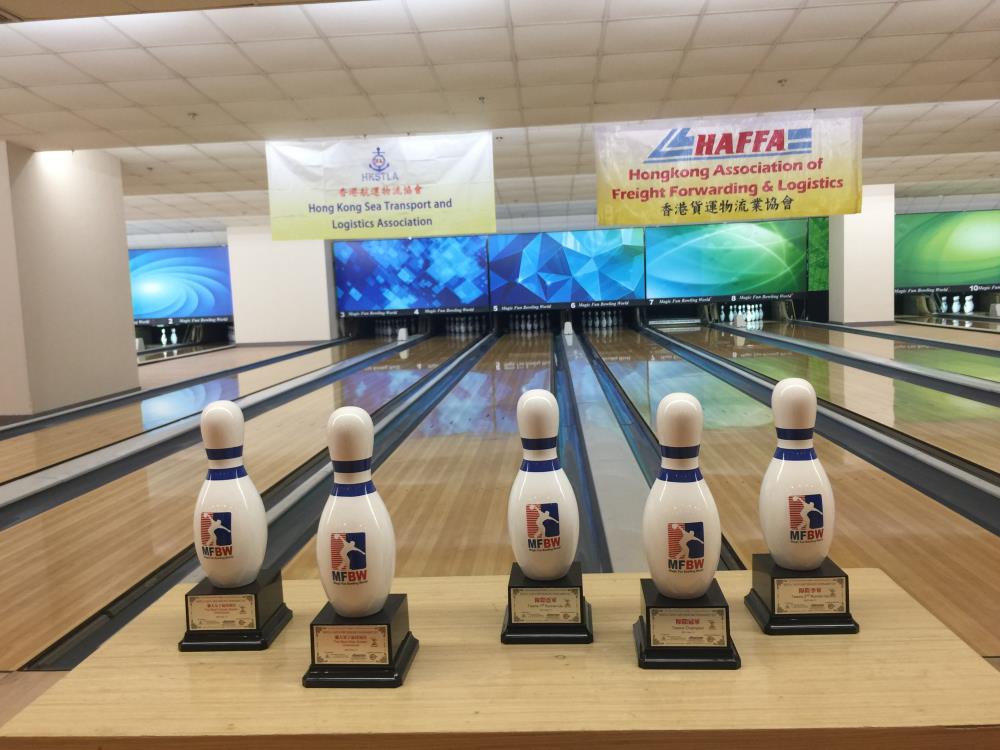 HAFFA/HKSTLA Joint Bowling Tournament, 17 December 2017 Supported by Hong Kong Logistics Management Staff Association (HKLMSA), HAFFA collaborated with the Hong Kong Sea Transport and Logistics Association (HKSTLA) for its seventh year to organize a Bowling Tournament on 17 December 2017 at Magic Fun Bowling World, Tsuen Wan. A total of 10 teams signed up for the tournament to contend for five awards after four games. Congratulations to the winners, they were: Team Champion | - Star Rainbow Logistics Hong Kong Limited | Team 1st Runner-up | - Grand Light (Int'l) Shipping Co. | Team 2nd Runner-up | - Scanwell Logistics (Hong Kong) Limited (Team 1) | Best Female Bowler | - Ms. Kimberly Lau Star Rainbow Logistics Hong Kong Limited | Best Male Bowler | - Mr. Ng Cheung Wah Star Rainbow Logistics Hong Kong Limited |