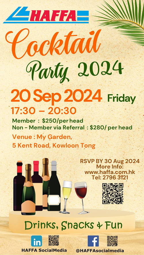 With the tremendous and enthusiastic support from Members and industry fellows, HAFFA Cocktail Party 2024 was successfully held last Friday (20 September 2024). We wish to thank you all for making our first-ever cocktail party a memorable experience at that.
