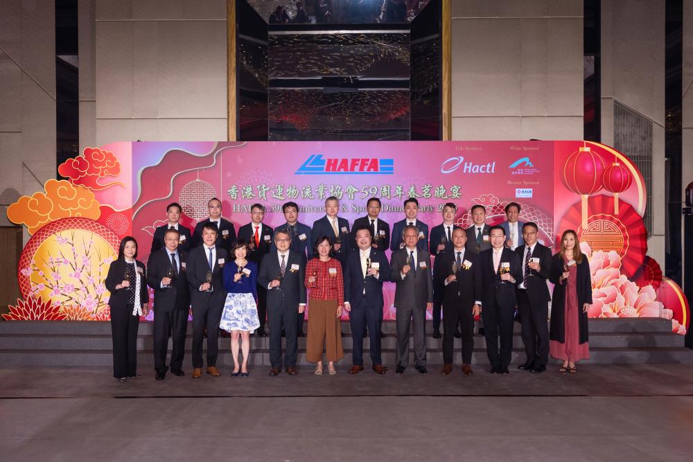 The Hong Kong Association of Freight Forwarding and Logistics (HAFFA) marked its 59th anniversary with the largest industry gathering of the year when approximately 600 members and guests attended the Spring dinner at Crowne Plaza Hong Kong Kowloon East on March 13, 2025.