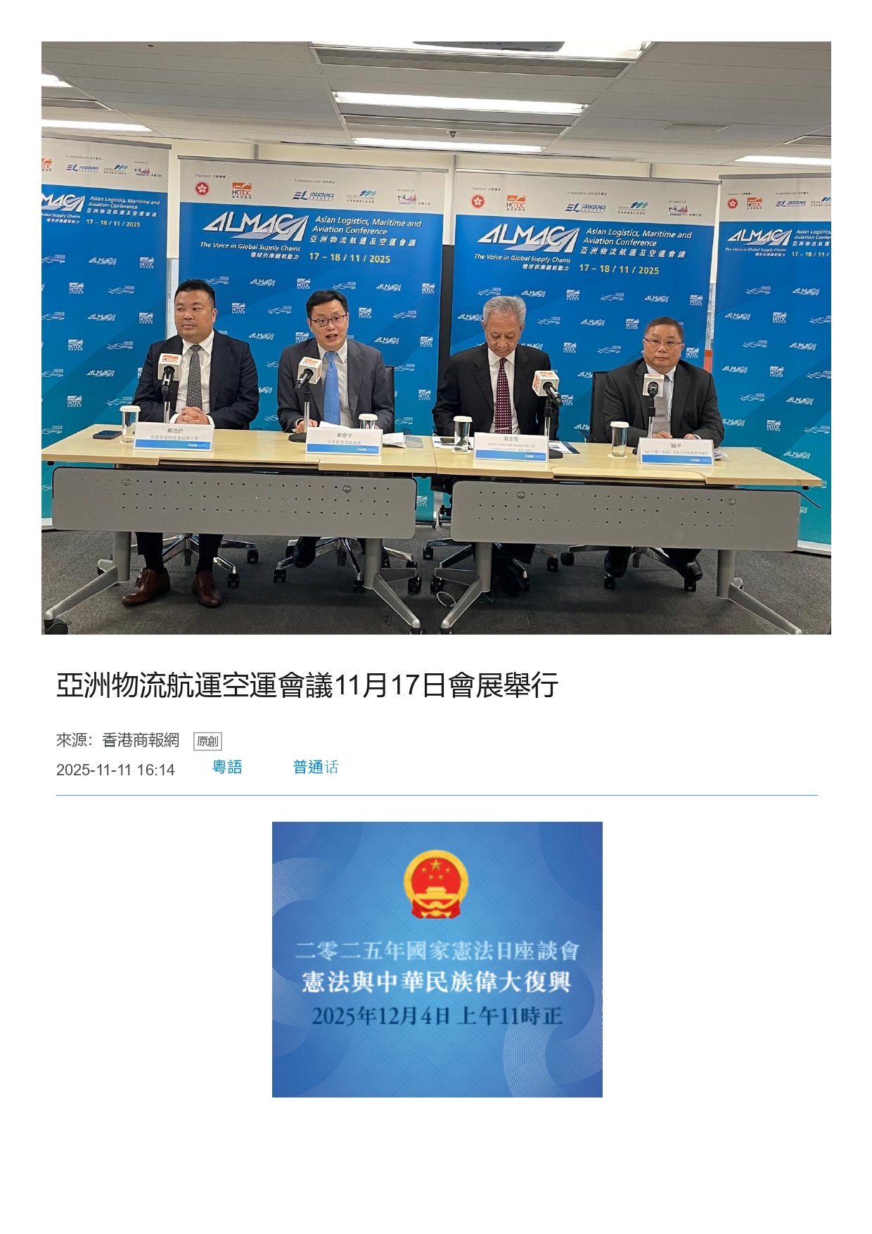 Media Interview with HAFFA Chairman - 亞洲物流航運空運會議11月17日會展舉行 (香港商報)