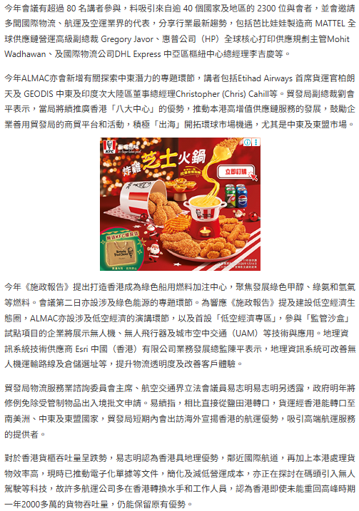 Media Interview with HAFFA Chairman - 亞洲物流航運及空運會議下周一舉行 談綠色能源及創科 (明報新聞網)