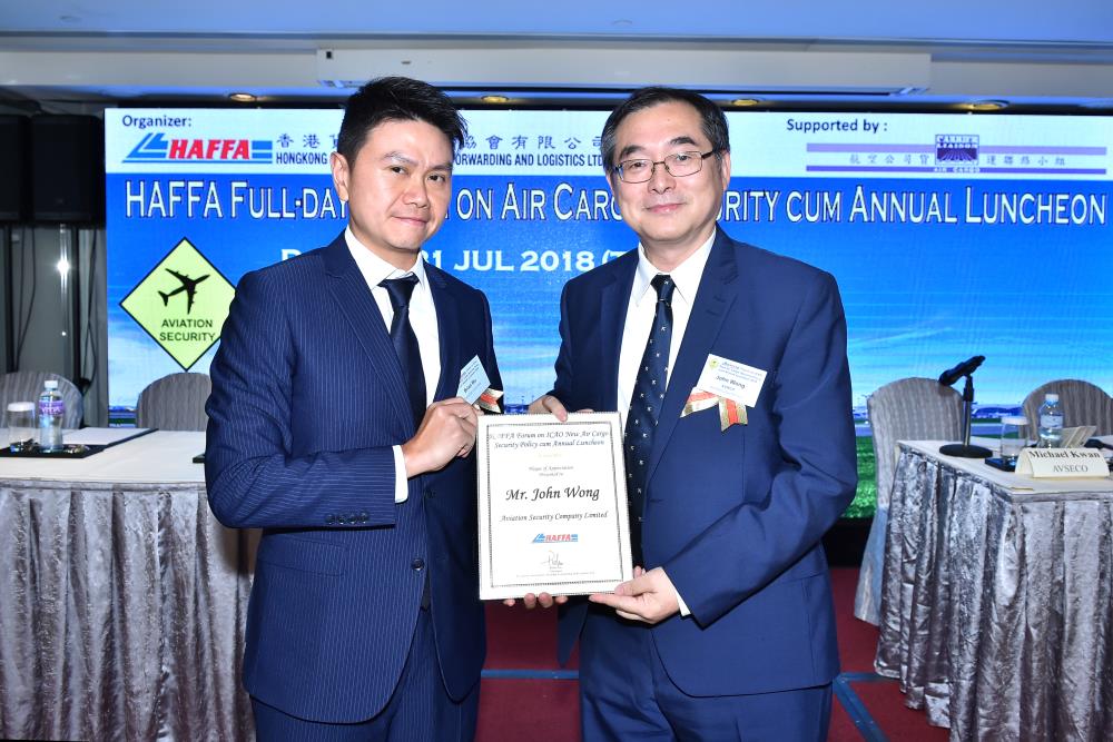 We’ve learnt from the SB and CAD that the requirement of the RACSF will soon be finalized, whereas CAD planned to give briefings of RACSF final policy to the industry in July and August. And CAD will commence the acceptance of RACSF application in September 2018. In order to bring to members first-hand ICAO requirement and CAD RACSF policy (FINAL), HAFFA actively engaged with Government on the ICAO new policy. We have organized 1st ICAO briefing session back in December 2017. We are very grateful that SB and CAD accepted our invitation to be our speakers giving us such important CAD briefing* on RACSF final policy on 31 July 2018.