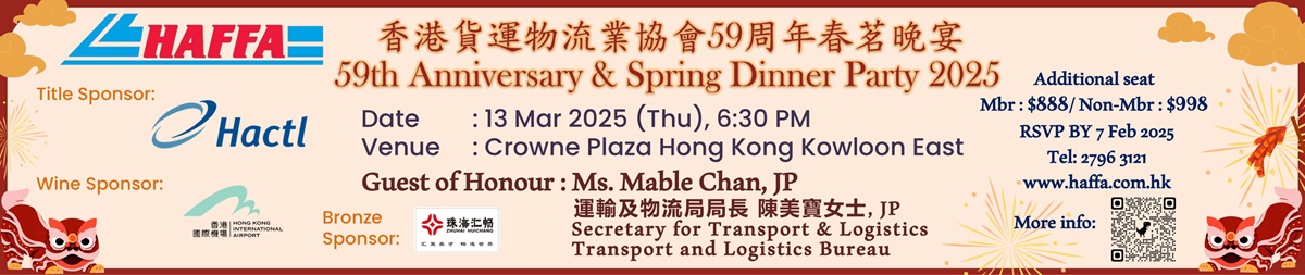 HAFFA Chairman Mr. Gary Lau congratulated members for ensuring Hong Kong retained its status as the world’s busiest air cargo hub after a 14% year-on-year increase in air cargo, handling over 4,900,000 tons in 2024, despite myriad challenges. These include prevailing global uncertainties, geopolitical tensions, intense competition from neighbouring airports, and manpower challenges.