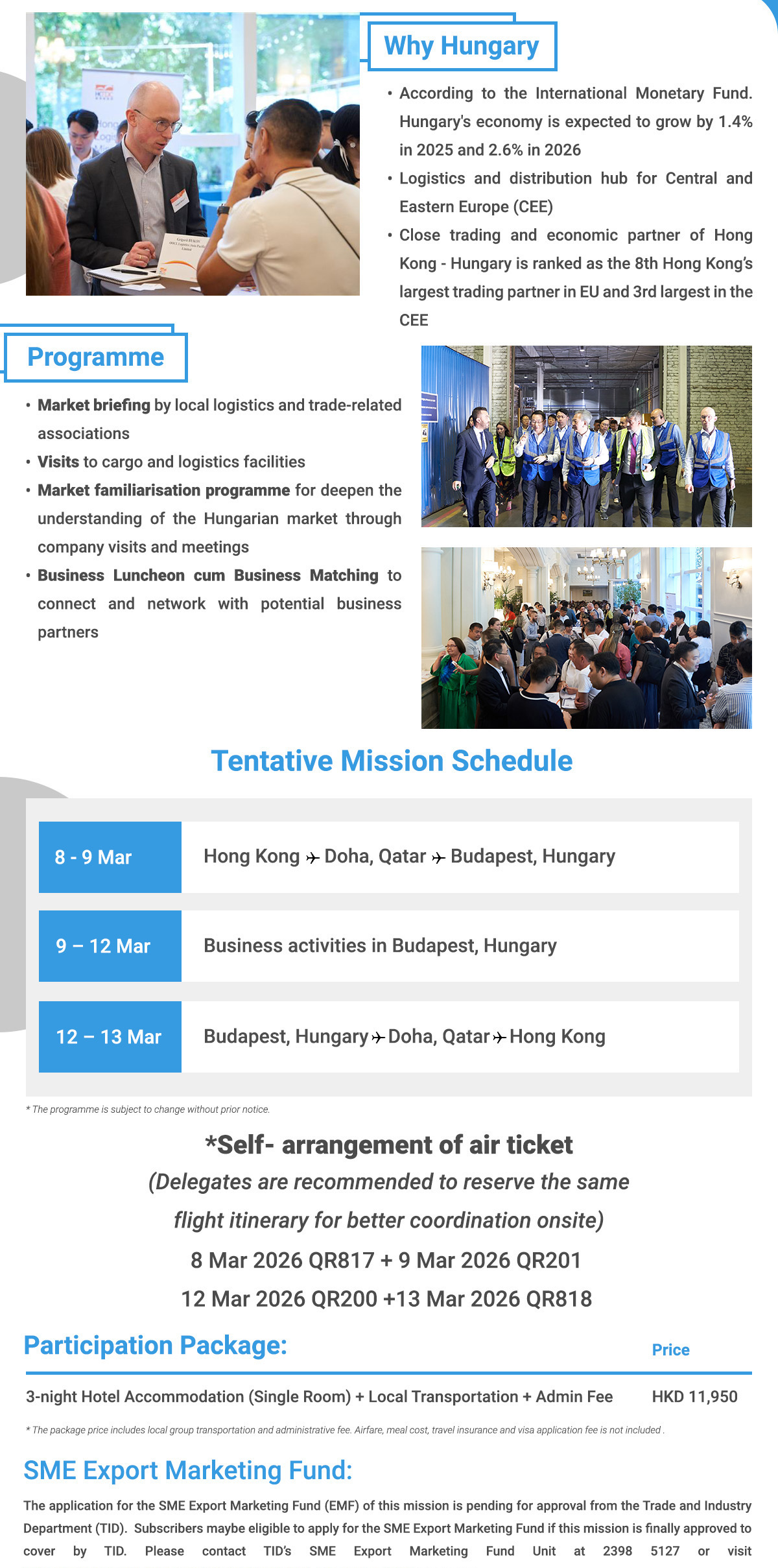 Hong Kong Logistics Services Mission to Budapest, Hungary 8 - 13 March 2026Hong Kong Logistics Services Mission to Budapest, Hungary 8 - 13 March 2026Hong Kong Logistics Services Mission to Budapest, Hungary 8 - 13 March 2026 |