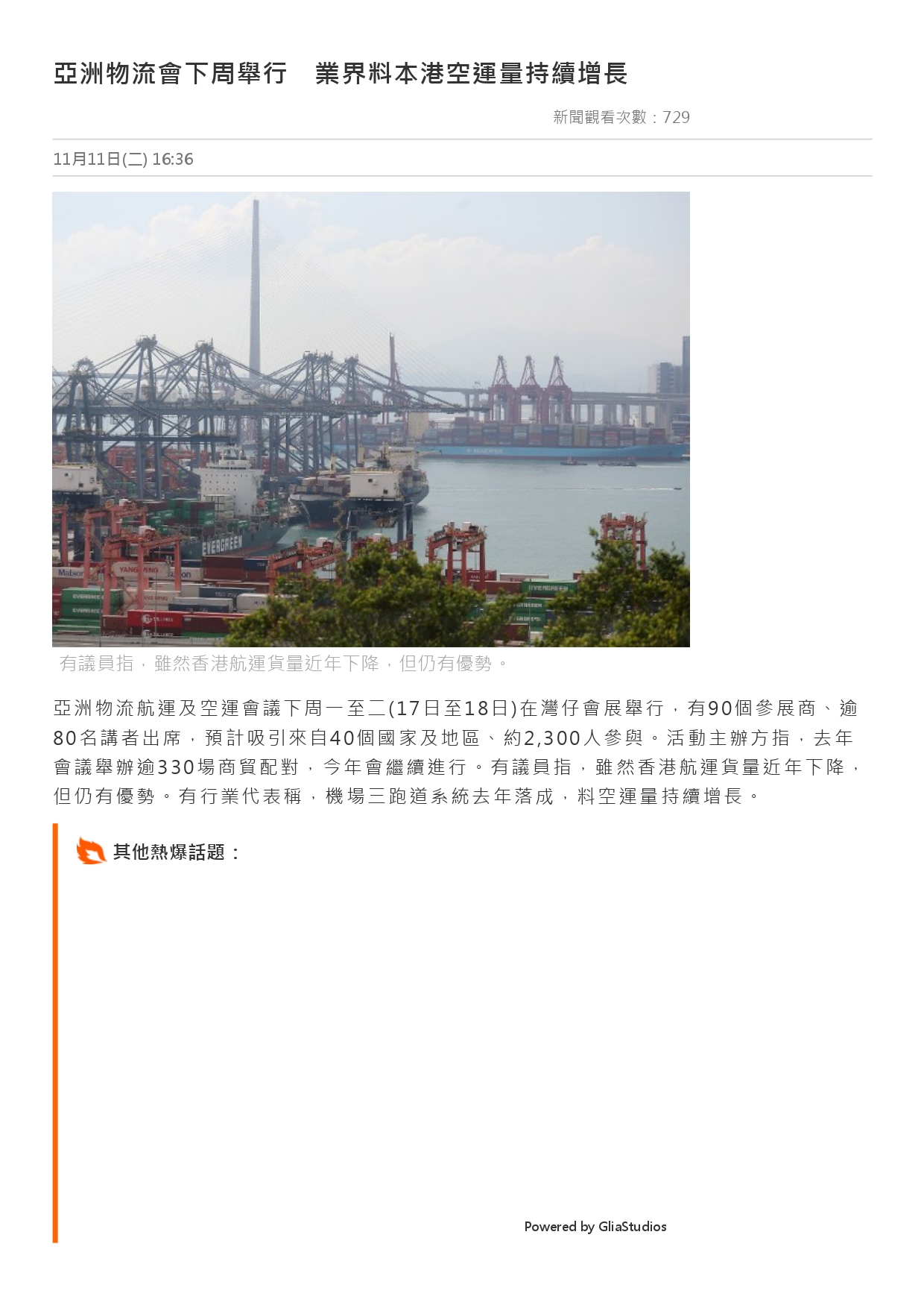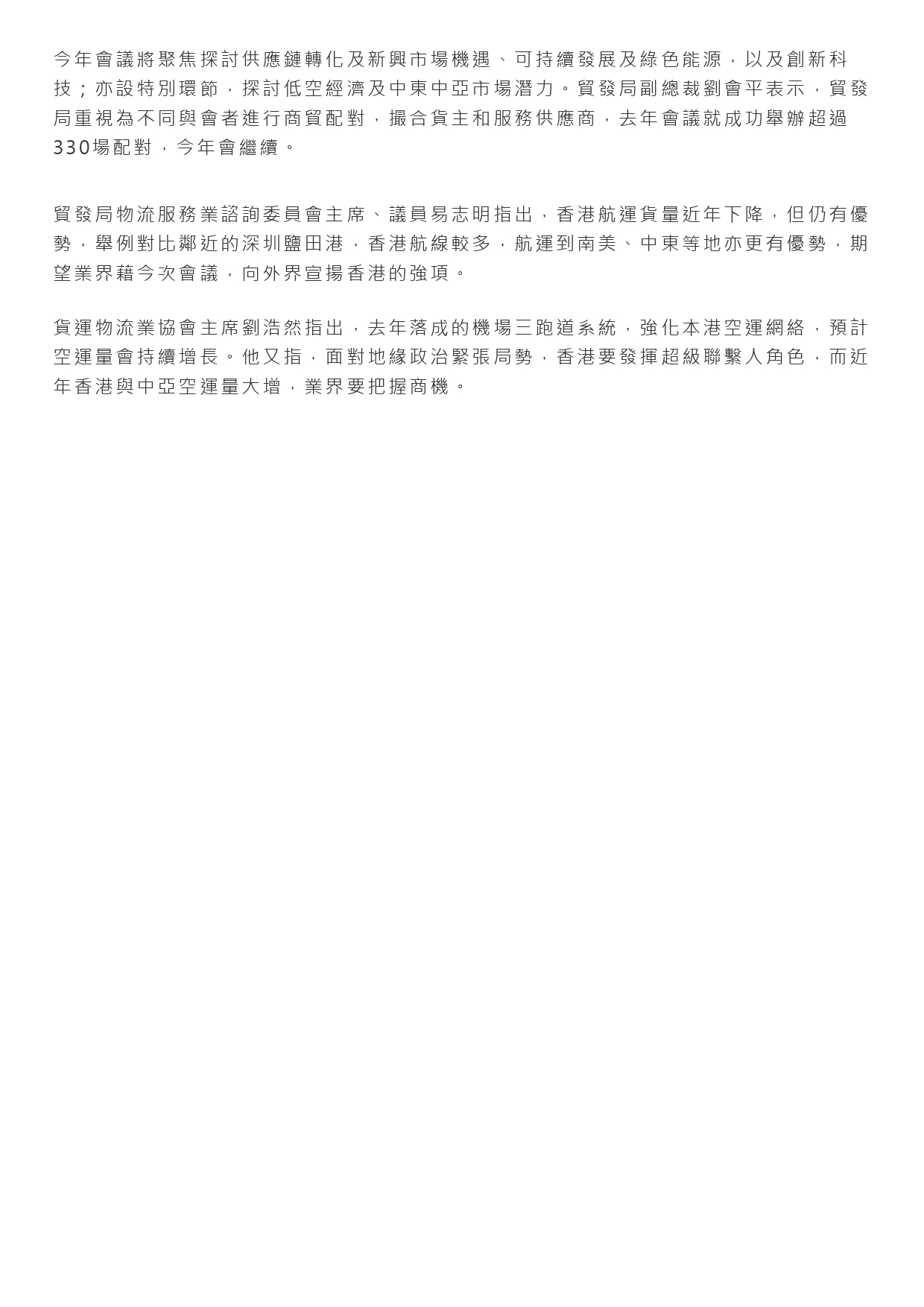 亞洲物流會下周舉行 業界料本港空運量持續增長