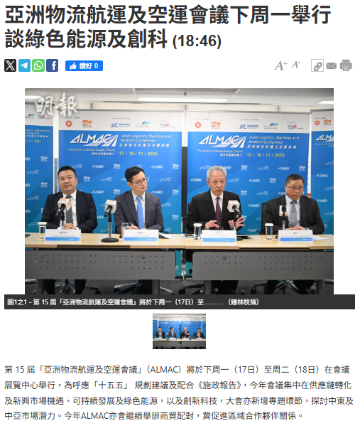 Media Interview with HAFFA Chairman - 亞洲物流航運及空運會議下周一舉行 談綠色能源及創科 (明報新聞網)